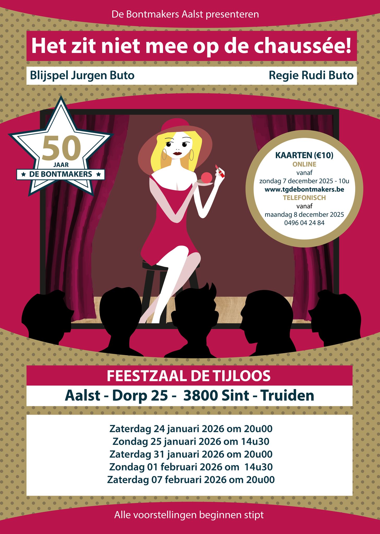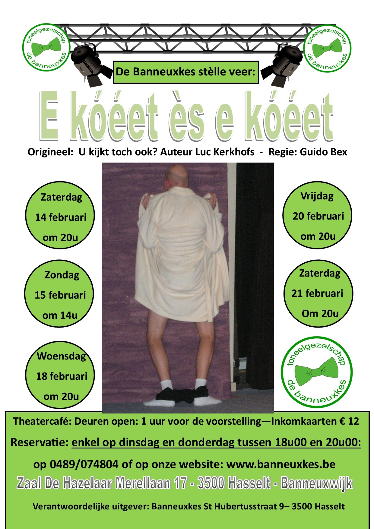 Na 14 december kaarten te verkrijgen in het HVT-lokaal aan de achterzijde van 't Kuipershof elke maandag en woensdag van 17u30 tot 19u30 en elke zaterdag van 10u00 tot 12u00.