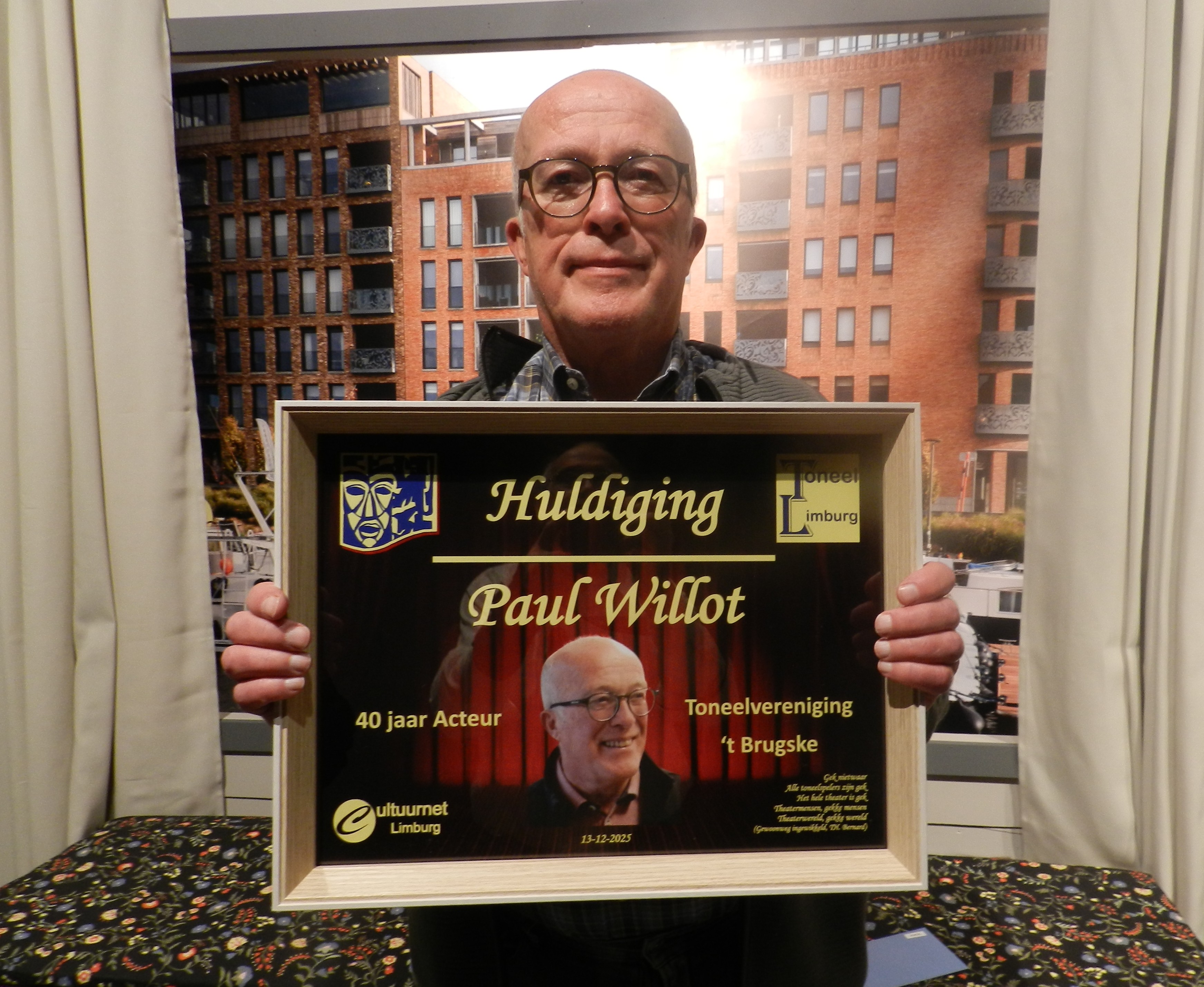 Op 13 december 2025 ontving Paul die reeds 40 jaar lang met heel veel plezier en overgave, bezield door theater, zijn vrije tijd gebruikt om een publiek te laten genieten van een mooie toneelvoorstelling, na de laatste voorstelling van “Boter bij de vis” bij Toneelvereniging ’t Brugske een oorkonde en een ereteken.